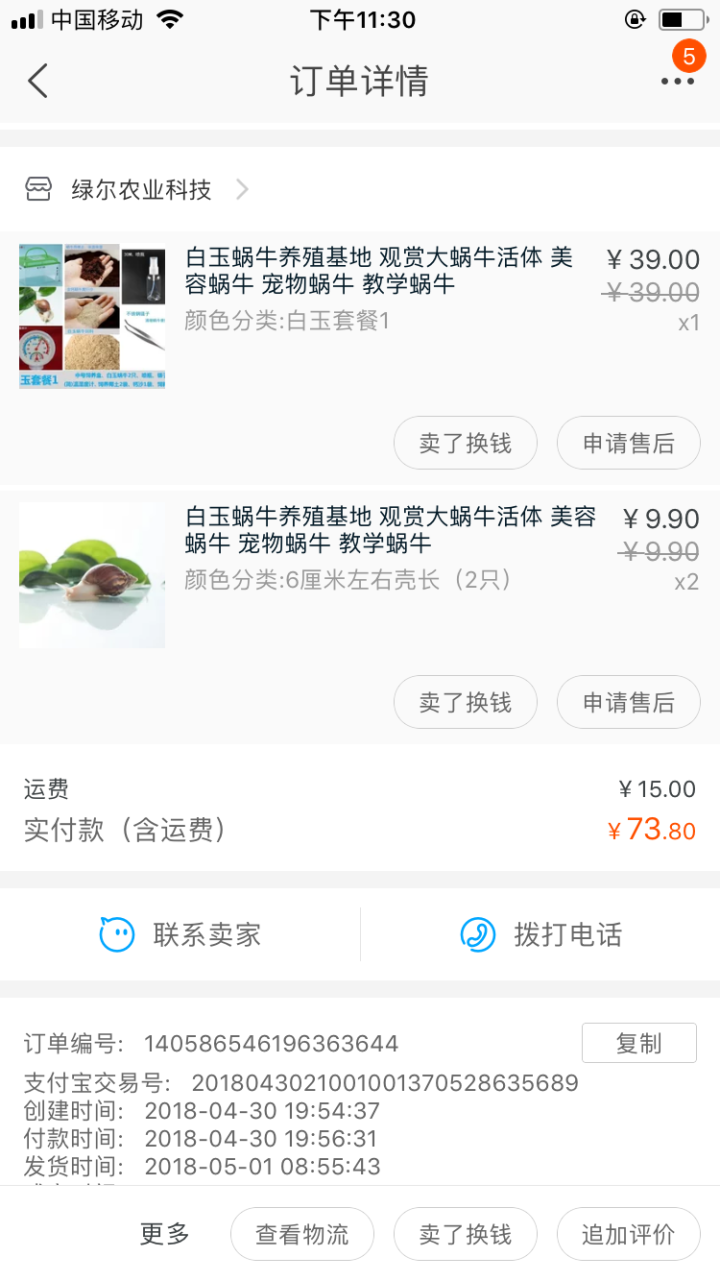 2.蜗牛,买了六个,都是鸡蛋大。加一个盒子,一共80块钱,发到我们遥远的内蒙,路上六天,回来居然都活的。