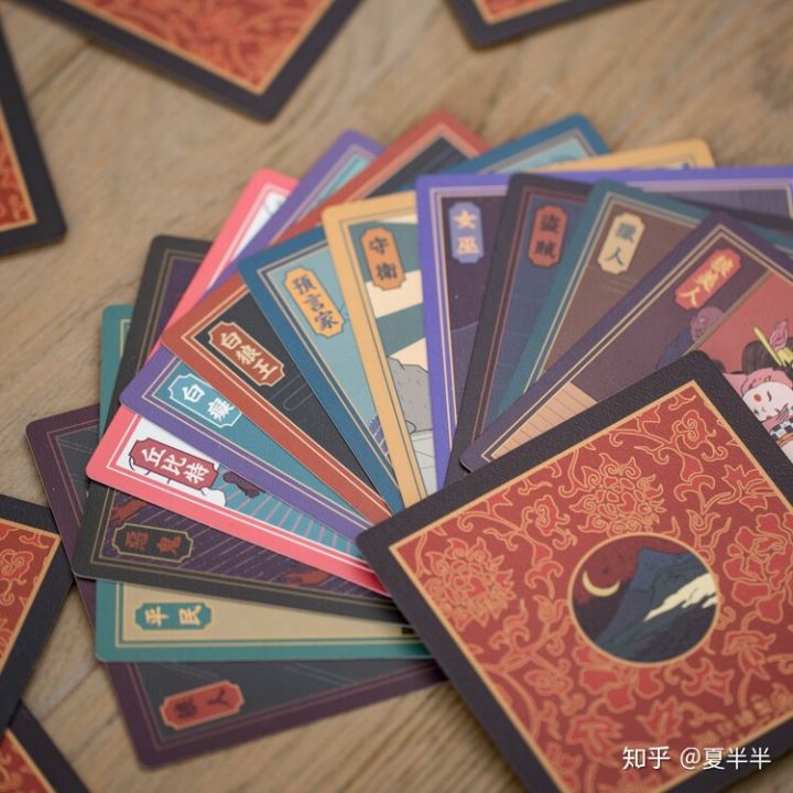 这是一套和风狼人杀卡牌,感觉拿了牌水平都上升了,当时艺术课集训,休息时间就带着孩子们十几人的大局,可酷!