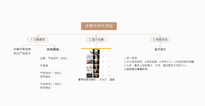 楼主想多了。详情页其实现在越来越多的商家设计得复杂。我就弄得很简单,一眼让客户看清楚最重要的信息。比如材质,尺寸,品牌,产地这些。。。再弄几张图片。就可以了。写多了废话,买家也没有看。我就写这么少的内容,到了实际客服中,仍然有很多买家咨询材质,尺寸之类的一看描述就能看到的问题。说明看描述只是粗略看下而已,谁仔细看了?再说,描述图片写多了,有些买家打开加载时间也会变长。当然,如果你一定做这个,就去找电商运营的微博,他们微博上肯定有详细的图示,教你哪部分哪部门放什么内容。虽然在我来看,都是浪费时间。在微博的长期熏陶下,国内很多人已经基本丧失了长篇阅读的兴趣。
