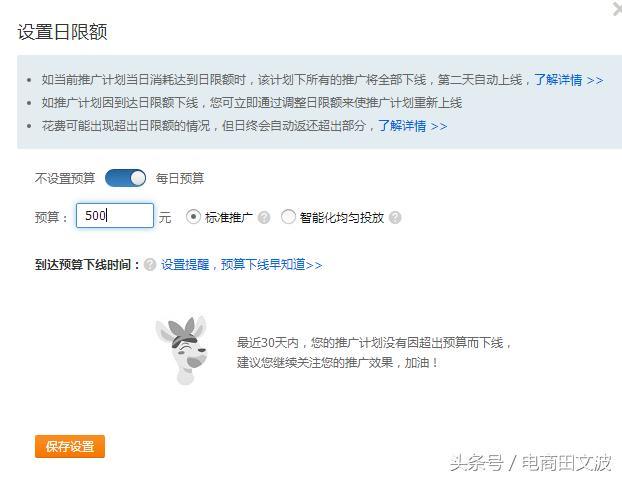 做好了这些基本内功,就可以进行测款了,测款看的就是宝贝本身好不好,适不适合推广,我们一般在测款的时候设置日限额在120-150左右,最好的是在测款的中途你不要停车,停车当天的数据没有测完,相当于当天的数据就是白白的测了,还会影响你直通车测款本身的计划权重,我们仅仅投放移动端站内,不用投放PC端或者是站外,因为前期不适合这样推广,初选的宝贝还是非常需要时间和市场来检验的。