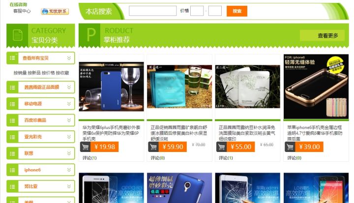 以我的淘宝店为例,页面版式很简约明了,不凌乱从而影响浏览体验(请忽略图片轮播处和3C数码主题不符合的面膜宝贝,还未修改更换) 简约明了适合小店铺和懒人用户