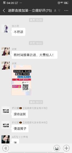 群里的都是刷单的小伙伴,发出来的都是商家名片(一定要是自己做过并且返了款的才可以发出来),一般都会备注好本佣,大家自行添加,加的时候备注做任务,商家都明白就会通过。