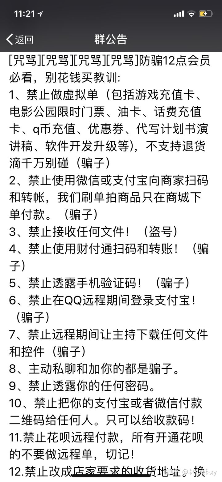 这个是我们刷单群里的防骗要求,其实只要像正常购物一样就不会出事,不要被高佣金得给骗了,我做这么两个月,最高佣金的就是30,大部分是五元的,所以不要看到高佣金的就扑上去!!!