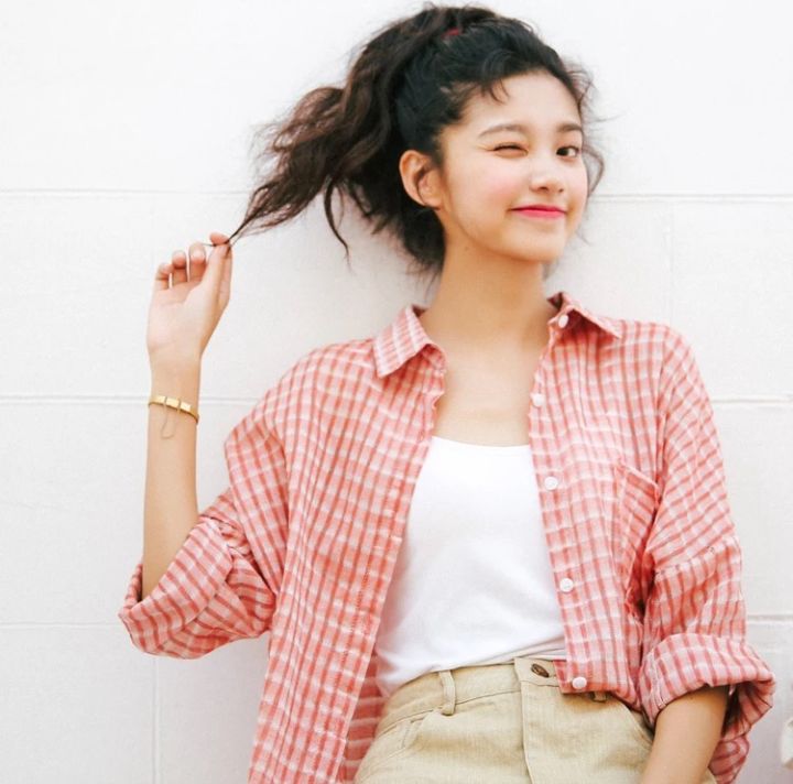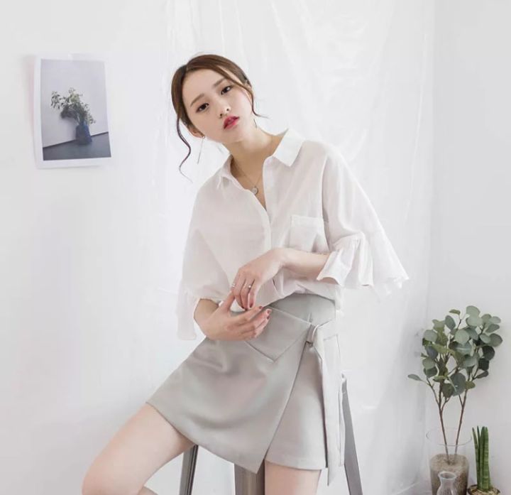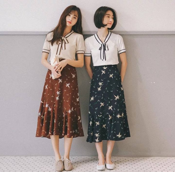 衬衫和半身裙首推,超温柔,以纯色为主,少量格子和条纹
