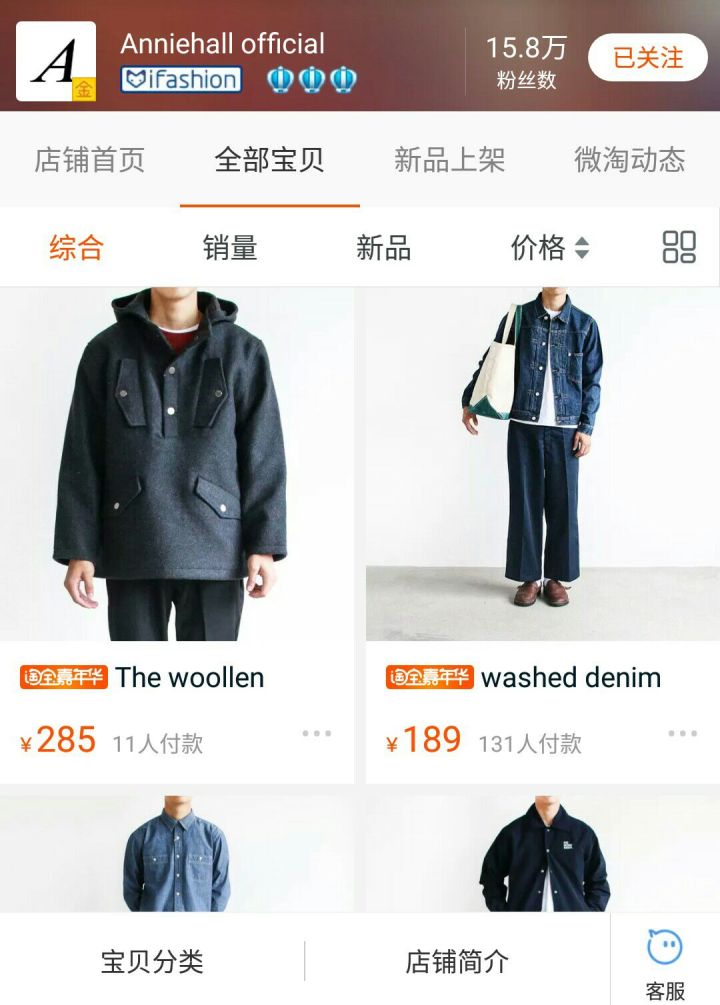 一家自制小店,有许多阿美咔叽风格的单品,衣服数量不多但真的棒。