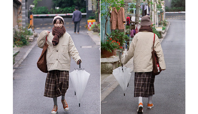她们家的感觉是工装又带点小复古的款式。(个人认为)有点日系工装风