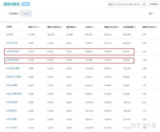 球泡灯这个产品不算小众市场,空间还可以。一般一天的人气值低于1000,可以认为是小市场