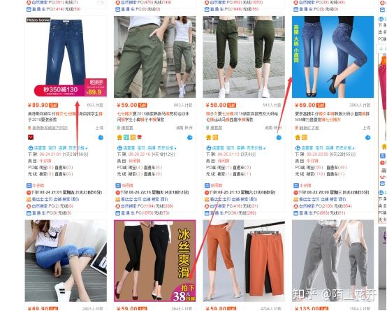 产品优先,顾名思义,就是要在主图上直接表达你要卖的产品,告诉大家你这个坑位是在卖什么的,注意一定要和你的标题,买家搜索的关键词契合!举例,你搜索一个词,七分裤女,我们看搜索框。