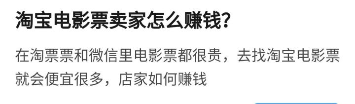 在淘票票和微信里电影票都很贵,去找淘宝电影票就会便宜很多,店家如何赚钱