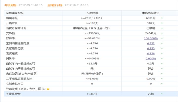 称为金牌卖家真的不容易,各种硬性条件,还有一个很重要的指标是买家喜爱度,这个数据完全是淘宝后台根据买家复购率等数据自行核算出来的。金牌卖家是可信的,很多数据根本没办法造假,也别指望刷单。