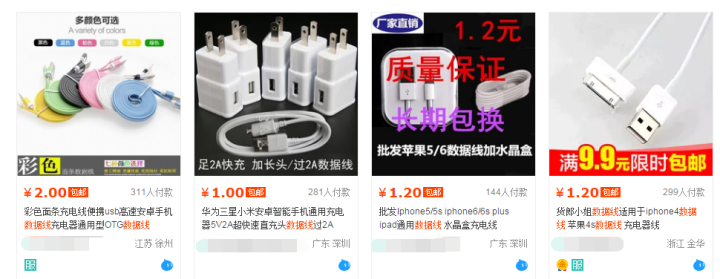 题主你亏大了你知道吗?你以为卖家就挣你了几块钱?你这条3块钱的数据线,他挣了你十几块啊!