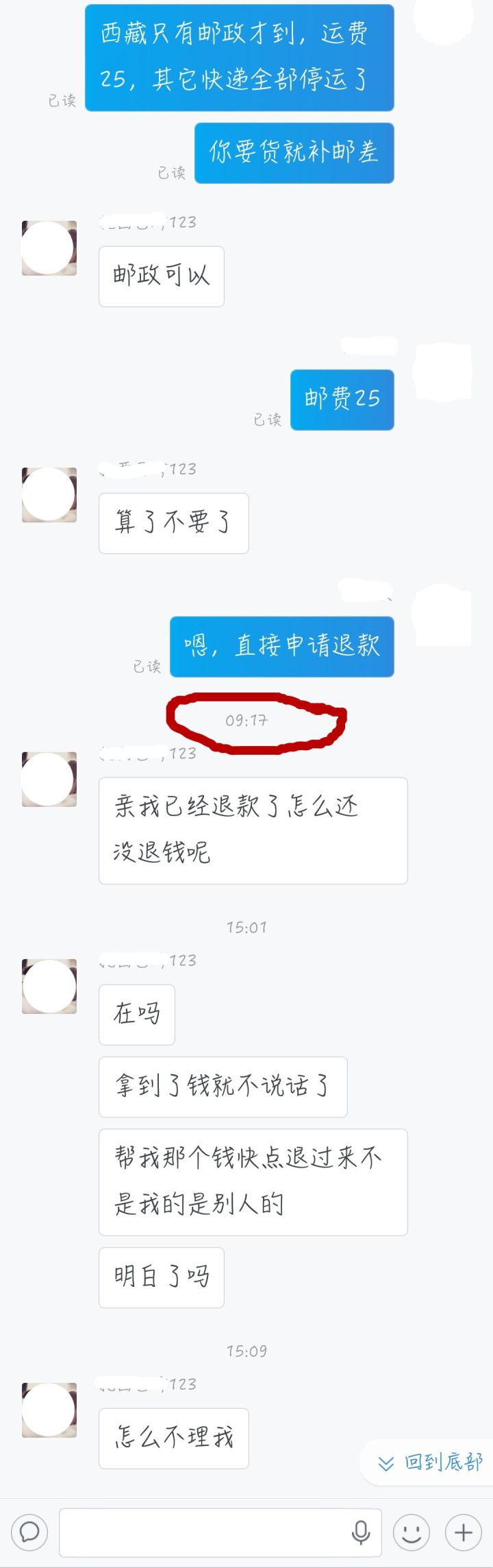 买家还没申请退款,就在旺旺上嚷嚷要卖家退钱,更有些奇葩发支付宝账号让卖家直接给它转账的