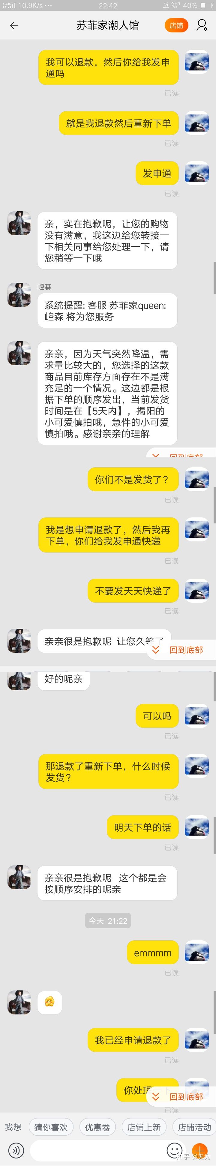 就这样一句话,被这家店不由分说踢出群,过了一周左右吧,我才发现自己不在群里了,而且准备买她家某件大衣时,发现被限制购买。