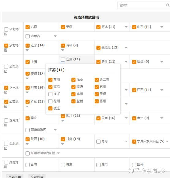 从生意参谋里可以一目了然的看到各个城市访客数和下单买家数的占比。再根据直通车后台地域的报表数据两者综合分析,这边是删选过后的投放地域。