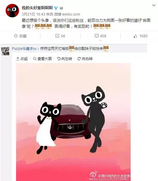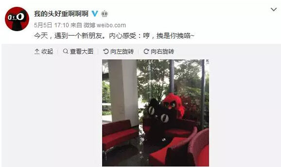 13. 天猫有个微博账号叫@我的头好重啊啊啊啊,一只向熊本熊看齐的公仔网红,从2014年到现在,这只黑喵已经积累了600多万粉丝。