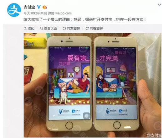1.首先是马云旗下的支付宝,支付宝本身就是实名制的APP,马云手上拥有了大数据,男生,女生打开APP跳出来封面是不同的,不要觉得奇怪,拼在一起才是惊喜~