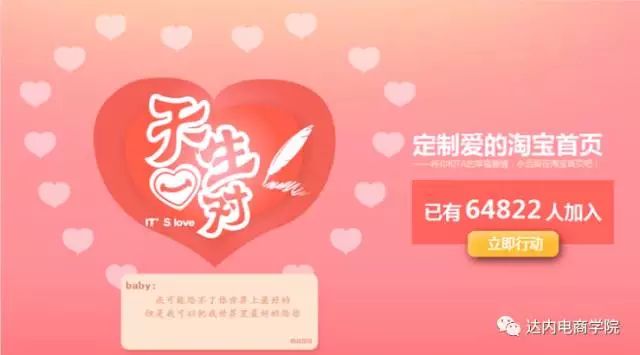 消费者点击“立即行动”按钮,便可进入定制页面,可随意选择模板并写上自己想说的话,点击提交后获得链接。链接打开后,淘宝首焦便会出现第六张海报,即消费者定制的个性页面。
