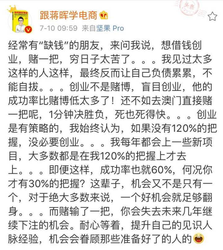 PS:任何一对多的培训,本质意义都不大,不要盲目相信。。。在没有太多资源的情况下,生意没有捷径,就是死磕。。。
