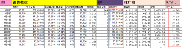 每天上班第一件事就要看一下昨天、以及最近一周,一个月的店铺的整体数据变化情况,重点看的数据是访客数、成交金额、支付转化率、收藏加购率、退款率、店铺层级;