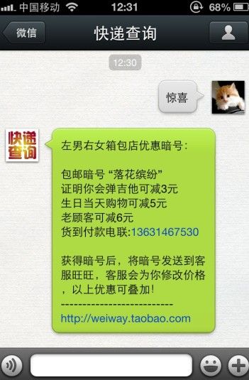 如果是在淘宝平台,哪个卖家敢这么做生意,估计一个顾客都没有。但偏偏微信上的这些“苛刻”的卖家们却依然把这个生意做的风生水起,我认为,这不光是在产品上淘宝有价廉质差的原因,更是因为微信沟通方式比淘宝旺旺甚至QQ更具亲切和信任感。