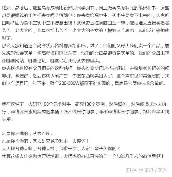 你可能会问,这些内容哪有什么文章可以做,三五天就发完了。那么问题就来了:谁让你每天发文章骚扰用户?一篇文章10万阅读但是没人购买,和一篇文章100阅读但是3个人购买,你觉得哪个划算?
