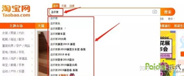 打开淘宝网——在搜索栏里搜索你的产品的关键词。比如“连衣裙”: