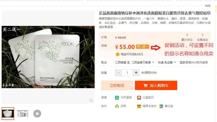 5.打折和促销需要使用卖家服务处的相关促销插件如火牛促销等,在卖家中心-营销中心-促销管理处可设置促销活动,免费的促销服务插件好像没有,都是属于付费的