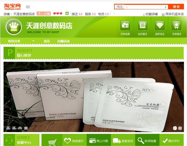 以我的淘宝店为例,页面版式很简约明了,不凌乱从而影响浏览体验(请忽略图片轮播处和3C数码主题不符合的面膜宝贝,还未修改更换) 简约明了适合小店铺和懒人用户