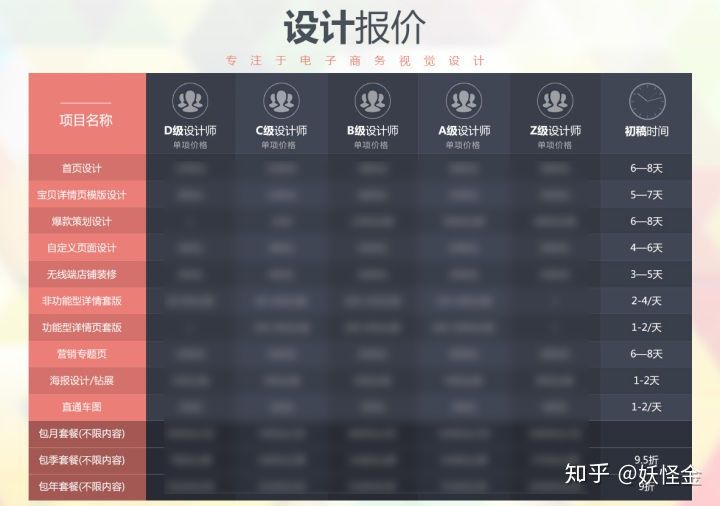 之前在外包公司工作,公司按工作年个人接单价格,这种的还算比较合理的,多少功夫多少钱。但是期间真是被各种同行震惊,首页200,详情150……什么都见过,做下来都不值你费的那个神!