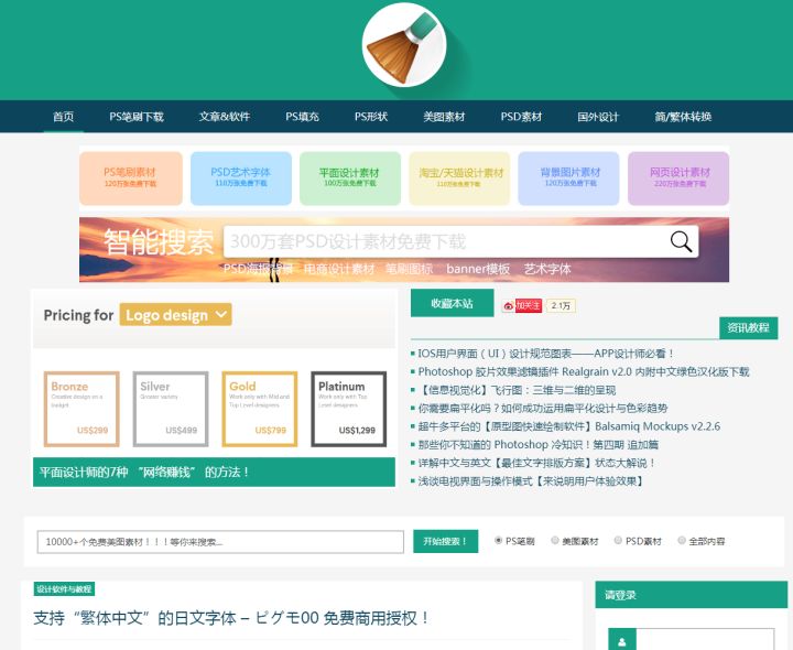 提供设计所需的各种图片素材和PS笔刷下载,不过该网站有好久没有更新过了。