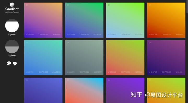 第二个图标gradient是渐变色的配色方案,同样可以调整颜料和明度还有渐变色的渐变方向。
