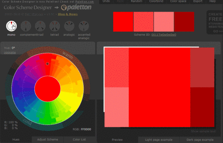 这里再介绍一个懒人用的色轮网站http://,能够按照你选择的主色固定的搭配出间色、复色、对比色等。