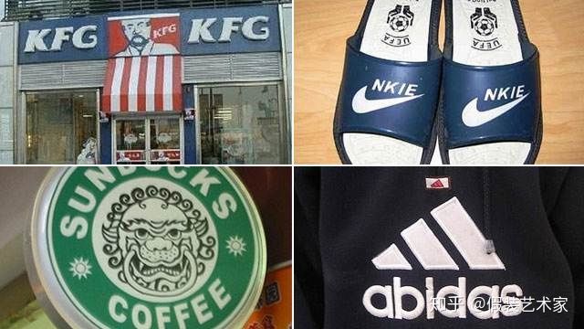 还有这些曾经被英媒报道而国际闻名的山寨品牌,也是靠辅助色、标准字、主体形象等重要元素的与原品牌的高度相似来鱼目混珠。