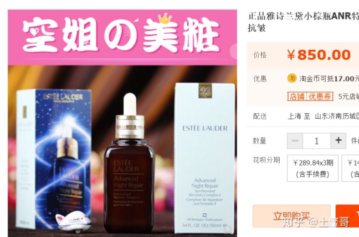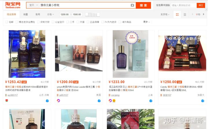 实操一下,以雅诗兰黛小棕瓶为例,打开某宝搜索一下。