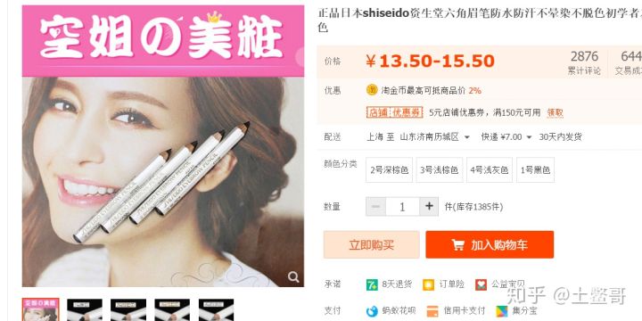 至此,有丝丝怀疑,因为就一个这样说的,不好定性。搜一个他家其他的东西,资生堂六角眉笔吧,小东西不贵还很畅销的款式,评价肯定超级多。