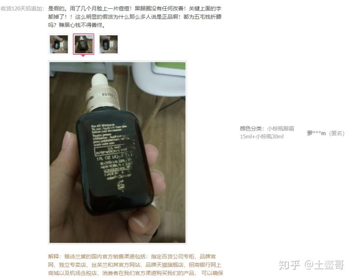 有人可能会问,那么多好评呢,看几个差评就定性了?我敢说好评的里面有很大部分之前没用过这产品,给好评正常。买到真货的,给好评也正常。差评如果都是物流不好啊,用着过敏啊,没有效果啊,我也不会这么决绝的断定真假混卖。
