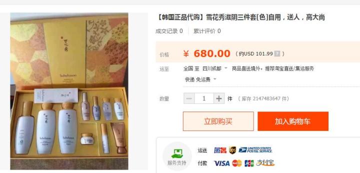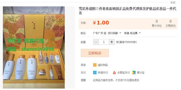 要是觉得查免税店价格不方便,就去和天猫旗舰店比嘛。比如说一套雪花秀滋阴三件套,天猫旗舰店卖1440,韩国乐天免税店价格都是1200,这淘宝店给你几百块的,一千块的,敢买吗?自己用毁容,送人用就是毁人呀,毁了别人也毁了自己。