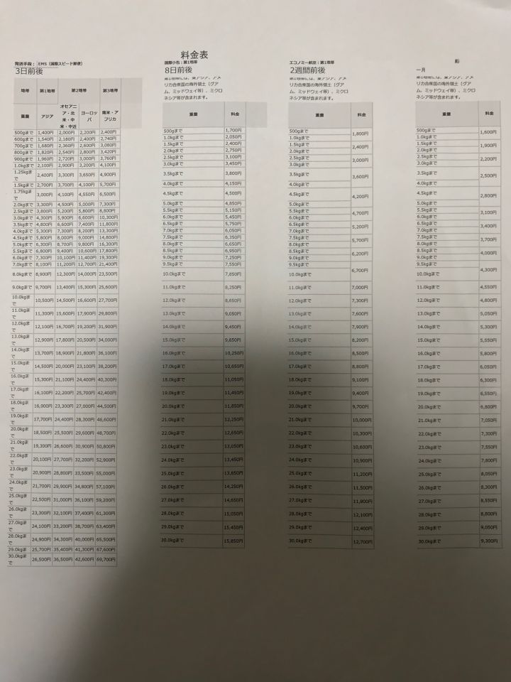 下面 是国际运费价格,乘以现在汇率0.06就是人民币的价格,就知道国际运费多贵了,至少85块钱起的,具体微信号就不说了,感兴趣的私聊我吧,长期在日本,保证正品!如果有什么关于日本的事情也可以问我哈,就算我不知道还是可以给你们打听打听的,还有那些学日语的小妹妹们也可以加我哈,因为本人大学不是日语专业的,可以互相交流,一起进步