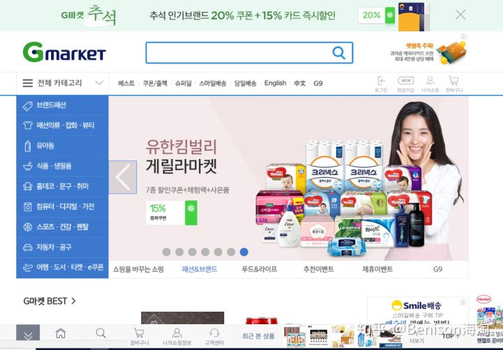 Gmarket是韩国非常大的电商平台,可以设置中文(注意:很多网站中文页面和韩文页面的商品推送是不一样的,中文页面的商品大部分支持全球购),Gmarket和天猫一样有非常多的个人商家和品牌店,个人建议在比较大的官方店买哦,Gmarket经常放送优惠券,加上商品折扣双重优惠,简直是韩淘小仙女们的天堂。