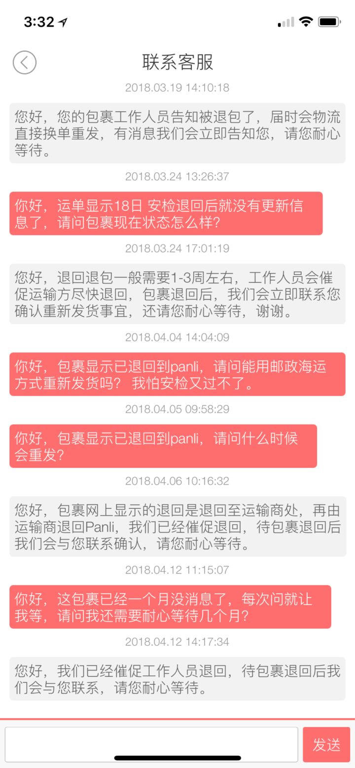 现在我们终于用完panli credit摆脱了这家恶心的公司,所谓三次购物三次出问题,我不管有个答案怎么洗白,这是我作为一个消费者真实的体验。