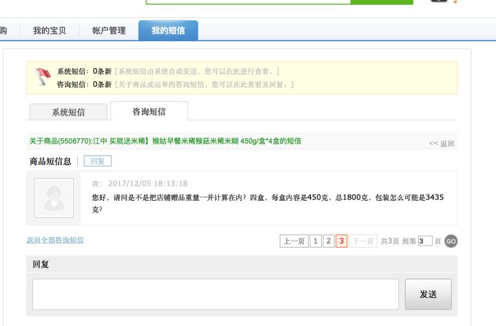 我跟客服沟通,咋回事。。。包装咋搞了3435克。。。。我买1800克的东西。。。搞个两倍重的附加重量。。。这是咋回事。。。答曰:“重量就是这么多”。