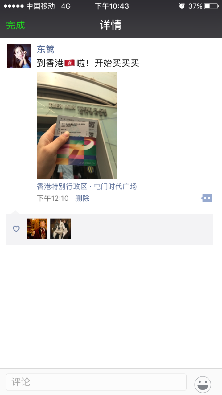 2、只有商场的照片也不能确认,最好有发一些自拍、带语音的小视频、定位等等,以确认确实是本人去的香港。
