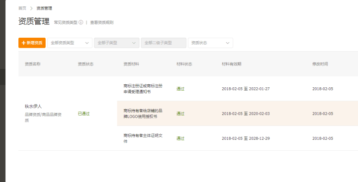 注意:1)同一品牌,请只点击提交一次【新增资质】即可