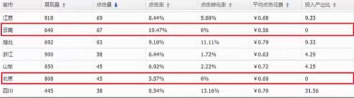 在投放地域方面,我们应根据计划报表的累积地域数据和主要成交词的流量解析里面,找出高转化高ROI的地域,从而进行投放,同时关闭低转化低ROI的地域。