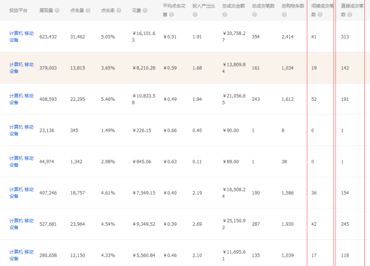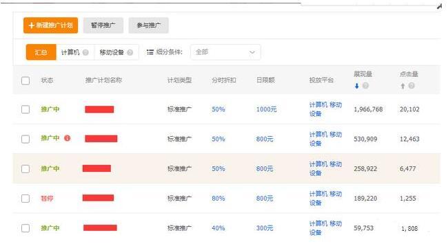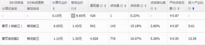 如果这个词点击率已经很高了,关键词的质量分也很高了,只是这个关键词竞争比较激烈,点击价格一直很高,那想平衡ROI投资回报率,只能降低它的引流成本,根据产品的转化率调整出价,让它停留在合理的展现位置上。如果是单独建个移动端的计划,用当前引流成本较低的移动端给转化能力还不错的关键词引流。