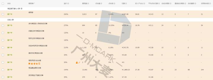 (3)、如果关键词的点击数一般的话,都是是辅助的引流词,判断不出关键词的转化能力,那我们需要多观察一下历史数据。这些关键词点击量一般很高,又有收藏率的话,我们可以给予适当的调价,提高这些词的展现量。如果经过一段时间,这些关键词的点击量不多,收藏率也不高的话,那么可以根据需求,降低这些关键词的引流成本或者是删除这些关键词。
