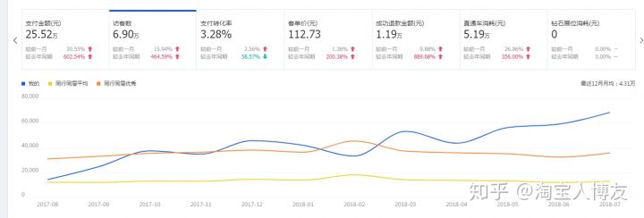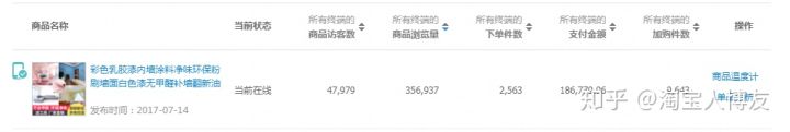 1. 3月中旬接手店铺,主推的产品是乳胶漆,这款乳胶漆销量稳步上涨,7月份单量稳定在每天180件以上,7月整月卖了5326件,店铺销售额是25万。店铺从第四层级上升到第五层级。