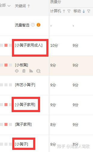 举个例子,小凳子就是符合你这个产品的买家搜索词,小凳子家用就是小凳子这个产品词的延伸词,类似像这样的关键词,在你的直通车计划里越多越好。当然,一个计划的关键词数量不要太多,控制在20个左右。
