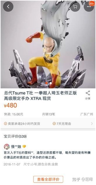 比如之前追一部漫画,一拳超人。然后到淘宝买手办,发现这个产品450元竟然评价已经500多,应该是卖了几千个了。这种冷门产品机会很多。