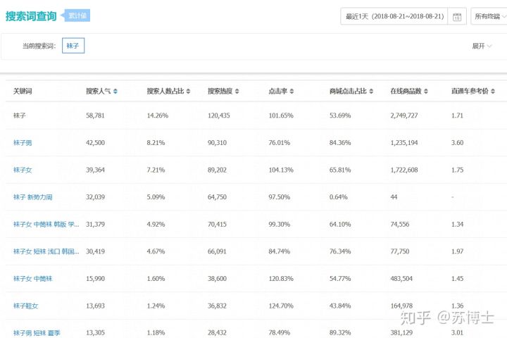 所谓的蓝海词就是在线商品数少,搜索量高的细分产品,具体公式自己研究,需要注意商城点击占比,太高就放弃这个词。
